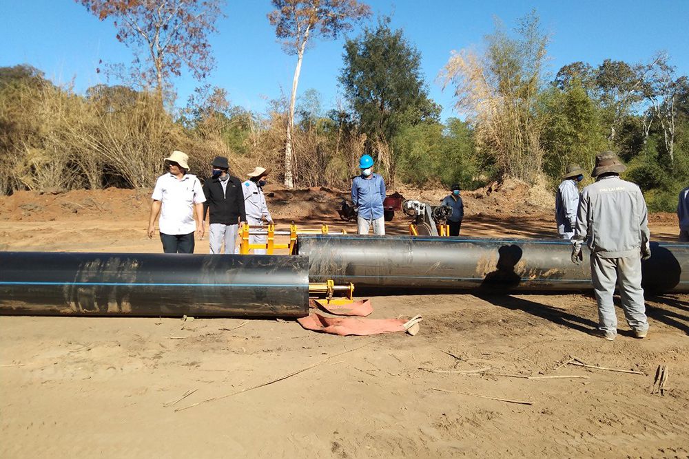 Sản phẩm sử dụng: Ống HDPE SuperPlas đường kinh lớn, phụ kiện HDPE, Mục đích sử dụng: Cấp nước sạch cho nông nghiệp nông thôn, Giới thiệu dự án: Dự án trọng điểm cho cấp nước sạch nông thôn tại Campuchia.